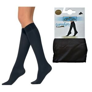 Mini Meia com compressão 40 deniers na altura do joelho com borda alta e confortável. Biqueiras invisíveis.