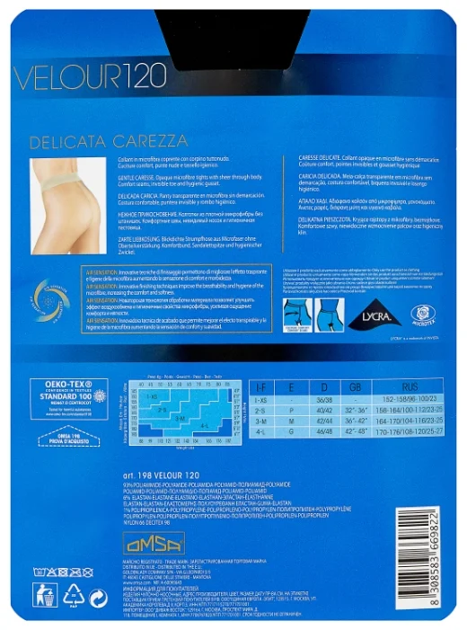 Collant feminina clássica com densidade de 120 Den de microfibra macia . Fosco e aveludado. Sem shorts (uniforme em todo o comprimento), cinto confortável, costuras planas confortáveis, fole higiênica, biqueira transparente. Air Sensation é uma tecnologia de processamento de materiais ultramoderna que melhora a troca de ar e as propriedades higiênicas da microfibra (aumenta a sensação de suavidade e conforto quando usada)