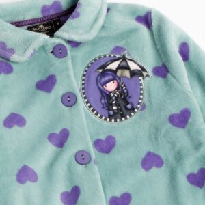 Robe especial muito quentinho em tecido Corel, na cor água com bolsos e corações lilá.
