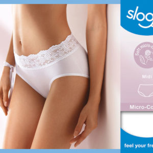 Esta cueca midi apresenta a mistura de algodão / microfibra da confortável série Sloggi Romance com uma larga faixa de renda na cintura para um visual elegante.